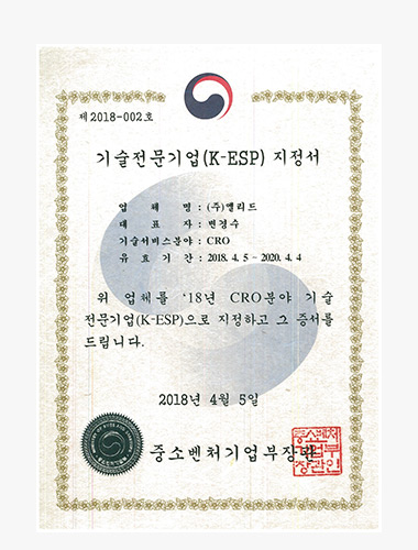被指定为GLP非临床试验实施机构(2016.04.20~2018.09.04)