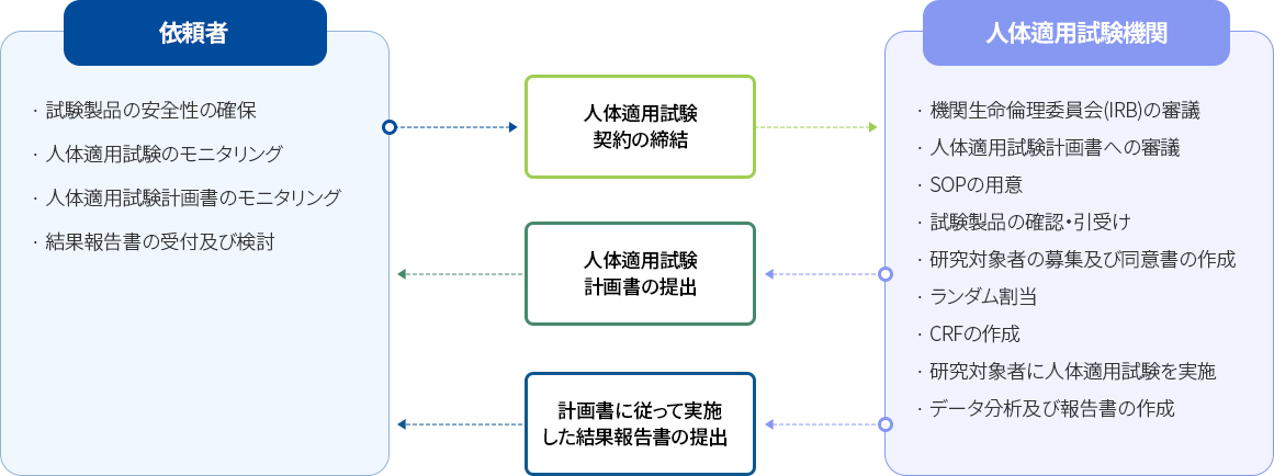 試験製品の安全性と機能性を立証するために、人を対象として実施する試験または研究